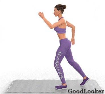Поднимите левое колено, после чего поставьте ногу на пол и сделайте шаг назад правой ногой. Теперь сделайте шаг вперед и вновь поднимите колено той же ноги. В ходе выполнения помогайте себе руками аналогично стандартной ходьбе. Упражнение способно заменить пробежки на стадионе, поскольку обеспечивает отличный жиросжигающий эффект и развивает выносливость.