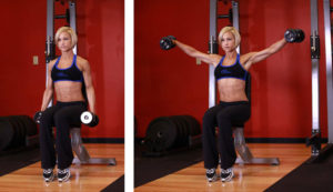 | 2. Подъем гантелей через стороны сидя 6 подходов из 15, 12, 12, 10, 8, 8 повторений (дропсет после двух подходов из 8 повторений) | ![]() |