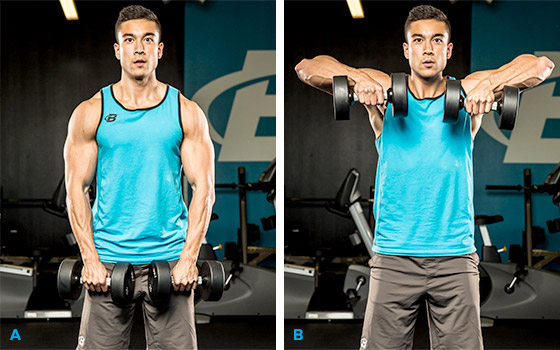 Важно поднимать снаряд усилием дельтоидов, не помогая себе корпусом. Если изолировать плечи не удается, используйте гантели меньшего веса