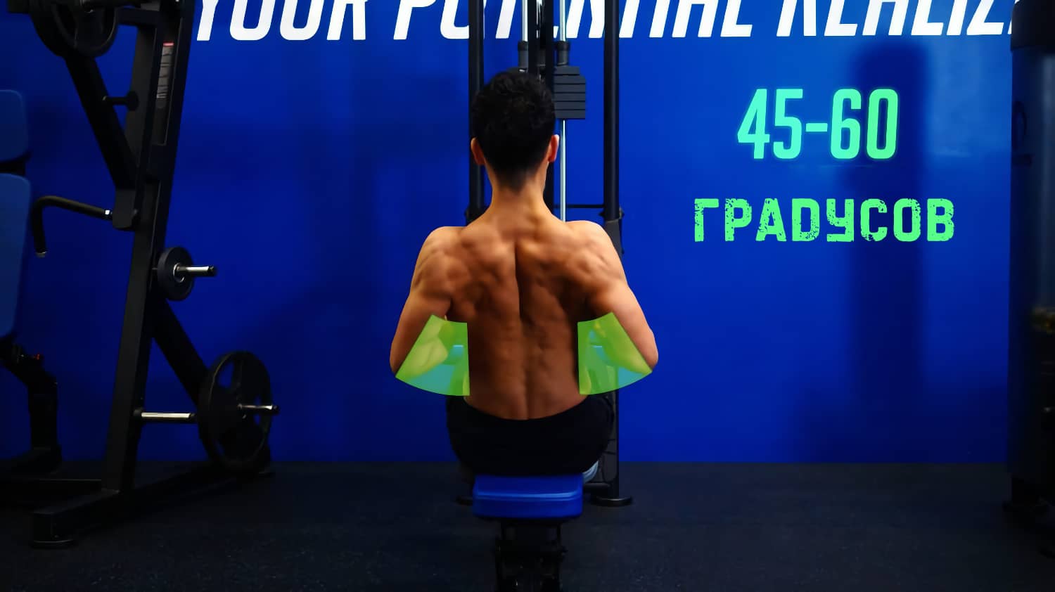 В движениях для прокачки целевых мышц, необходимо отклонять локти на 45-60 градусов от торса. Далее будет рассказано о 6 наиболее эффективных упражнениях для прокачки спины.