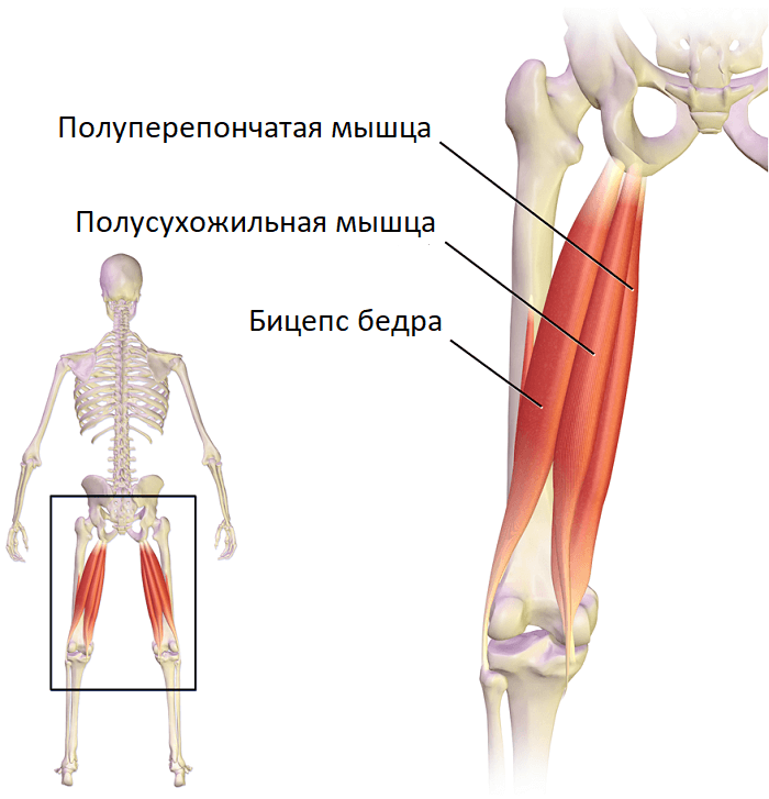 Все три мышцы берут начало от седалищной кости, на задней и нижней части таза. Исключение составляет бицепс бедра, который имеет две головки: