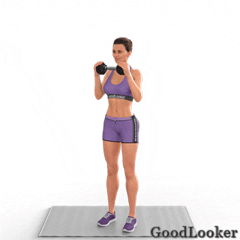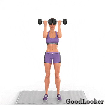 Возьмите одну гантель обеими руками горизонтально и согните руки в локтях. Теперь поднимите гантель вверх, выпрямляя руки. Не забывайте держать локти немного согнутыми, что более безопасно. Во время подъемов сосредоточьтесь на работе плеч, чтобы улучшить результат. Упражнение включено в тренировку на плечи для женщин, так как позволяет равномерно прокачать дельтоиды для выраженного рельефа.