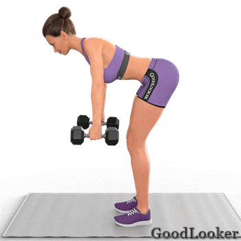 Возьмите гантели нейтральным хватом и встаньте прямо. Слегка согните ноги в коленях и сделайте наклон вперед, сохраняя спину ровной. Прогнитесь в пояснице, голову не наклоняйте вперед. Руки опустите вниз параллельно друг другу. Из этого положения отведите руки назад с полной амплитудой. Не сводите лопатки, чтобы сделать акцент на проработке дельт. Выполняйте это упражнение на плечи с гантелями, чтобы глубоко прокачать задние дельтоиды.