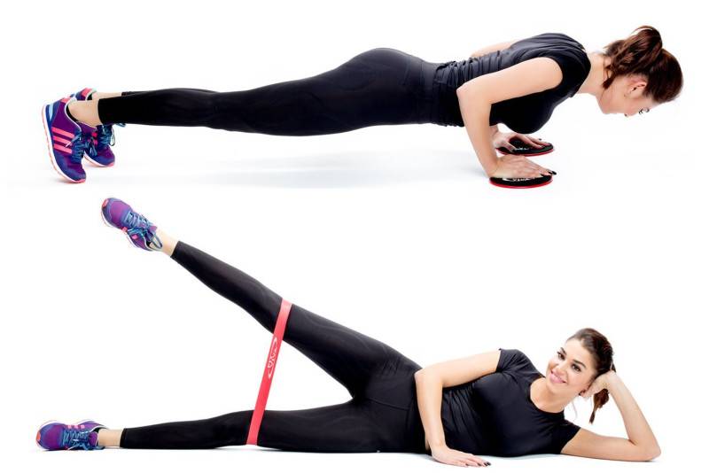 Вот еще 2 эффективных комплекса с резинкой для ног и ягодиц: