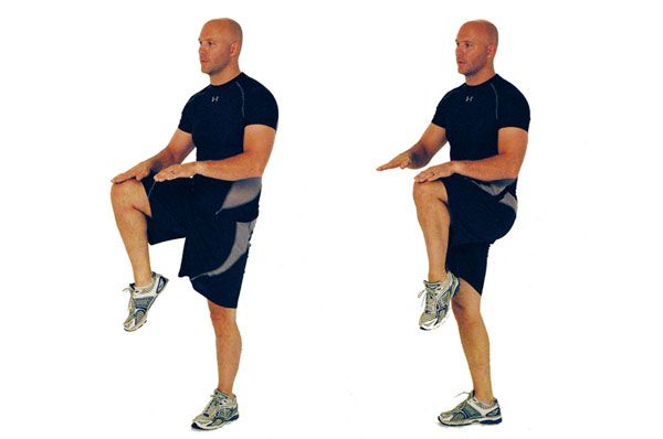 Для дома подойдет бег на месте с высоким поднятием колена.