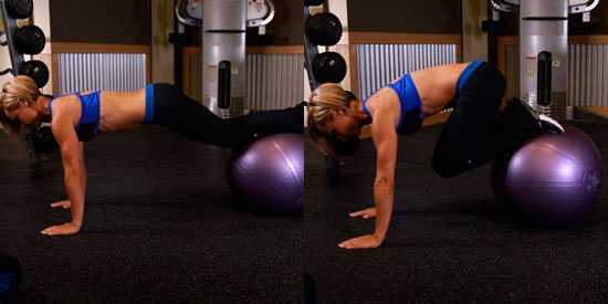 Подтягивания ног к животу на фитболе