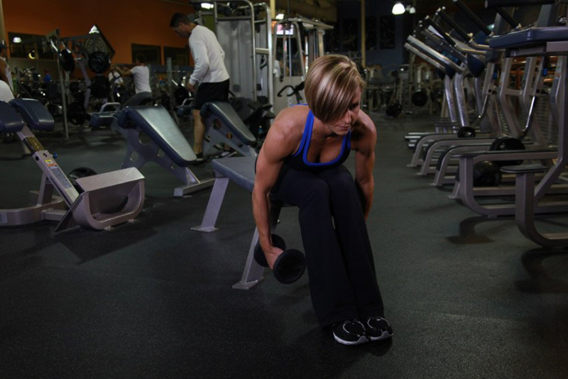 Садитесь сюда, чтобы положения тела было прямым. Это упражнение пользуется спросом уже давно. К нему прибегали на протяжении всех моих 35 лет, которые я посвятила поднятию веса. Привлеките мышцы нижней части спины, и вы почувствуете, что ваши плечи опускаются на место. Представьте, что вы сидите между двумя стеклянными стенками. Если гантели зайдут слишком далеко вперед или слишком далеко назад, стекло разобьется.