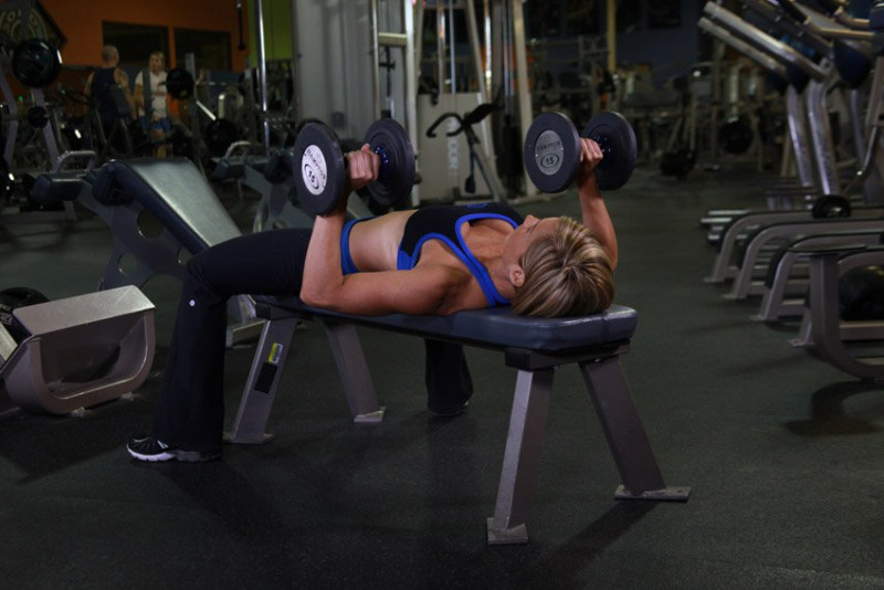 Гантели не должны соприкасаться друг с другом вверху; если расстояние между руками уже по сравнению с уровнем плеч, вы тем самым можете травмировать плечевой сустав.