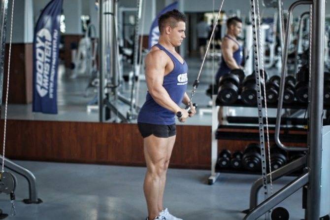 Упражнение для груди: Кроссоверы (сведение рук на блоках).