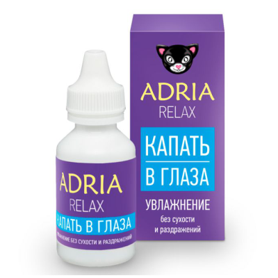 - Adria Relax. Препарат сделан в Южной Корее, он устраняет напряжение с глазных яблок и делает поверхность линз увлажненной. В состав капель входит гиалуронат натрия и янтарная кислота, представляющая собой антиоксидант и защищающая сетчатку от вредных воздействий.