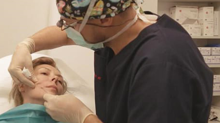- Разметка корректируемых мест. Если никаких противопоказаний не найдено, рисуется с помощью маркера специальная разметка на щеках пациента.