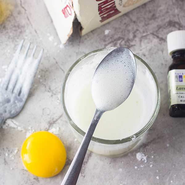 Разбавьте глину небольшим количеством воды, чтобы получилась густая смесь. В нее поочередно добавьте молочные продукты, эфир и мед. Наносится маска на лицо равномерным толстым слоем и остается на 30 минут.