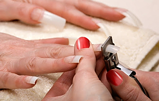 Перед тем, как дома самой снимать наращенные ногти из акрила, осторожно срежьте свободный край ногтевой пластины с помощью щипчиков или ножниц. Спилите с помощью жесткой пилки финиш-гель и приступайте к удалению акрилового слоя