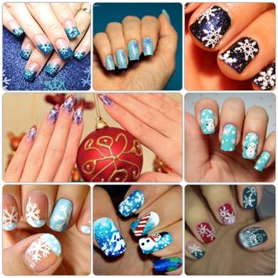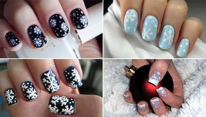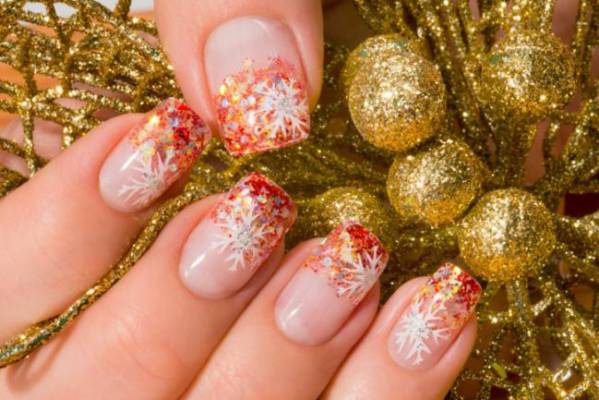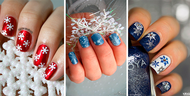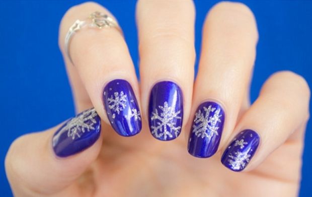 Новогодний дизайн ногтей с использованием снежинок (фото)