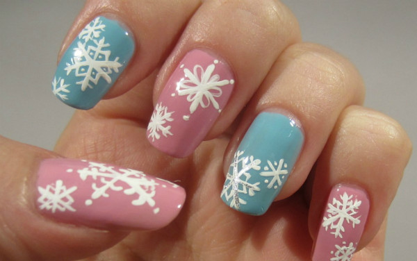 Вот такой зимний маникюр со снежинками гель-лаком получится.