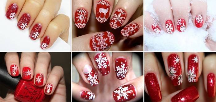 Перед тем, как приступить к художеству, необходимо выполнить все необходимые маникюрные процедуры. Цвет основы может быть любым, но классический вариант – белые снежинки на красном фоне или на черном фоне.