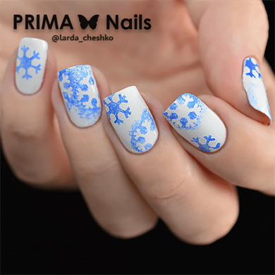 Хорошо будет смотреться на ледяном омбре множество снежинок, выполненных более контрастным цветом нежели фон.