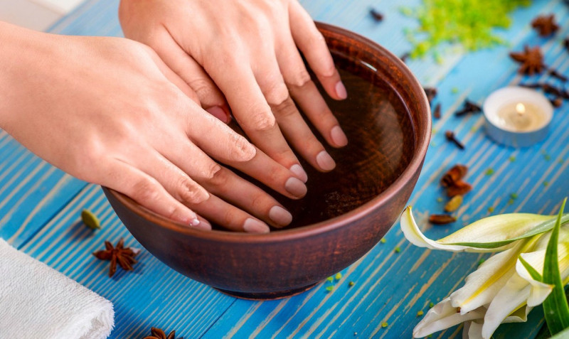 - Ванночка с маслом. В ёмкость наливают немного любого косметического масла, нагревают на водяной бане, погружают кончики пальцев. Через 15 минут промакивают руки салфеткой, делают лёгкий массаж.