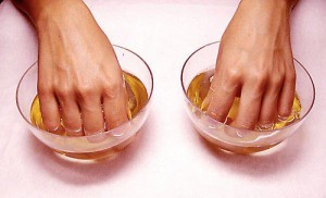 Горячий маникюр – сравнительно новая и довольно приятная процедура, которая заключается в том, что перед проведением маникюра пальчики погружают на 15 – 30 минут в емкость со специальным питательным лосьоном, оливковым или косметическим маслом. Температура жидкости составляет около 40 – 50 градусов. Процедура позволяет максимально увлажнить поврежденный кератиновый слой и часто применяется именно после снятия искусственных ногтей.