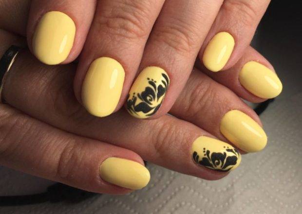 Этот цвет очень стильно смотрится в сочетании с желтым гель-лаком. Маникюр становится солнечным и точно сможет поднять настроение своей обладательнице. Необычный дизайн можно создать при помощи животного принта. В моде рисунки, имитирующие кожу зебры и коровы, можно добавить иллюстрации в виде змей и драконов — будет выглядеть новомодно и свежо.