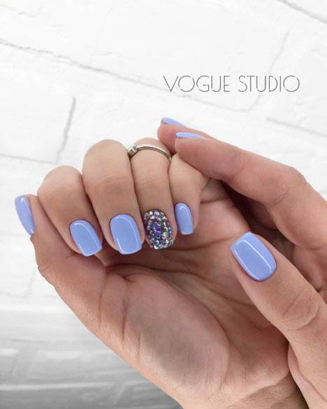 Однотонный маникюр опытные мастера маникюра стараются разбавлять цветовым акцентом.
