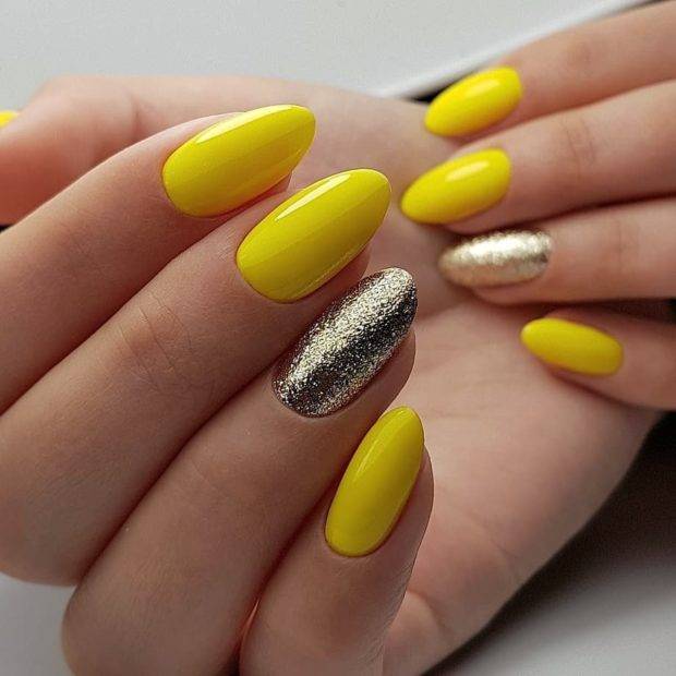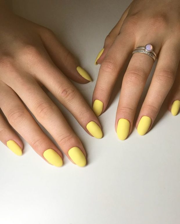 Линейка модных оттенков лаков порадует одним из самых позитивных и жизнерадостных цветов — желтым. Ноготки, окрашенный в цвет солнца, заметны издалека. Это качество цвета позволит моделировать самые неоднозначные и яркие образы.