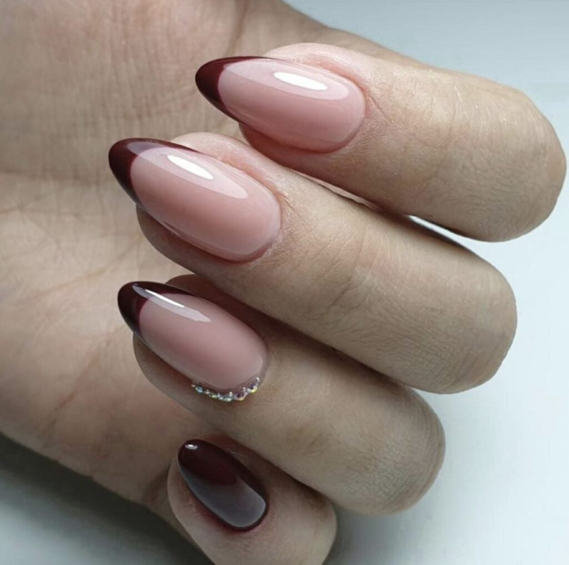 Такой маникюр сейчас очень актуален для поклонниц тёмных оттенков на ногтях.