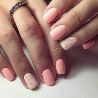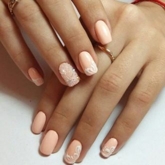 Однотонный маникюр опытные мастера маникюра стараются разбавлять цветовым акцентом.