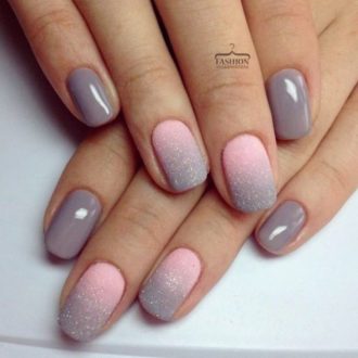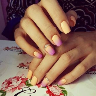Сейчас часто лучшие мастера маникюра предлагают сочетание матового покрытия и насыщенного градиента на ногтях.