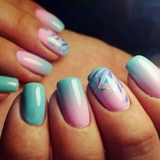 Яркие цвета в технике градиента – именно то, что так популярно летом. Сочетание красоты и солнечного настроения.