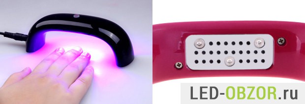 LED-лампы для сушки ногтей являют собой небольшие устройства, в которых происходит застывание (полимеризация) нанесенного на ногти гель-лака, шеллака, а также базового слоя и финишного покрытия. Для акрила устройство не подходит, поскольку основным компонентом, за счет которого происходит полимеризация этого материала, является кислота, тогда как гель-лак застывает под влиянием ультрафиолетовых лучей определенной волны.