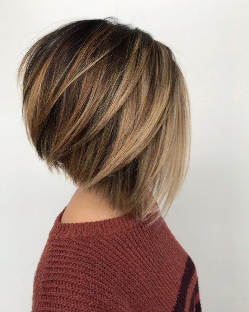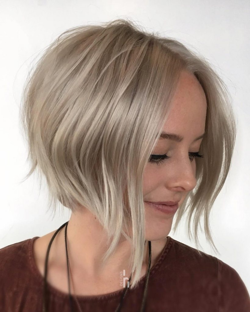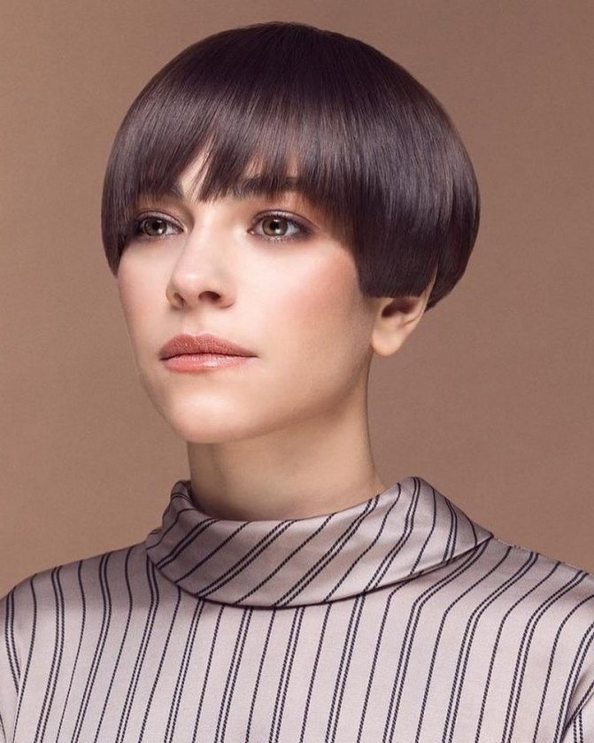 Короткий градуированный боб. Градуировка подчеркивает симметрию овала и придает ему дополнительный объем.