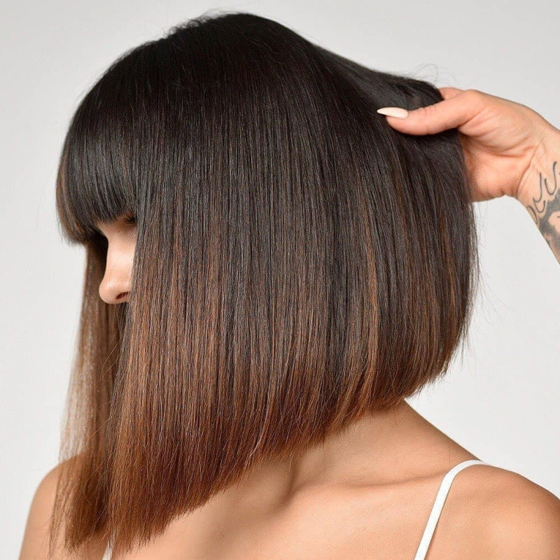 Боб с челкой или боковым пробором придает обрамление лицу, которое создает более мягкий образ.