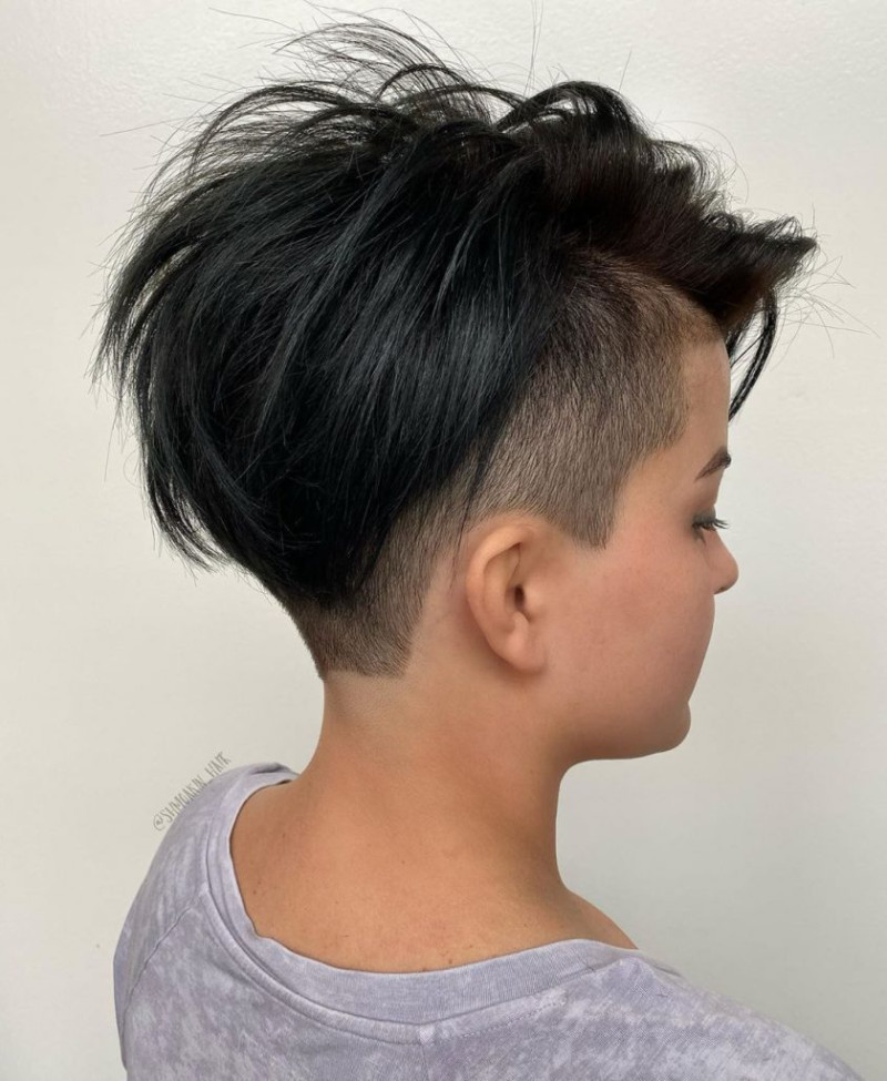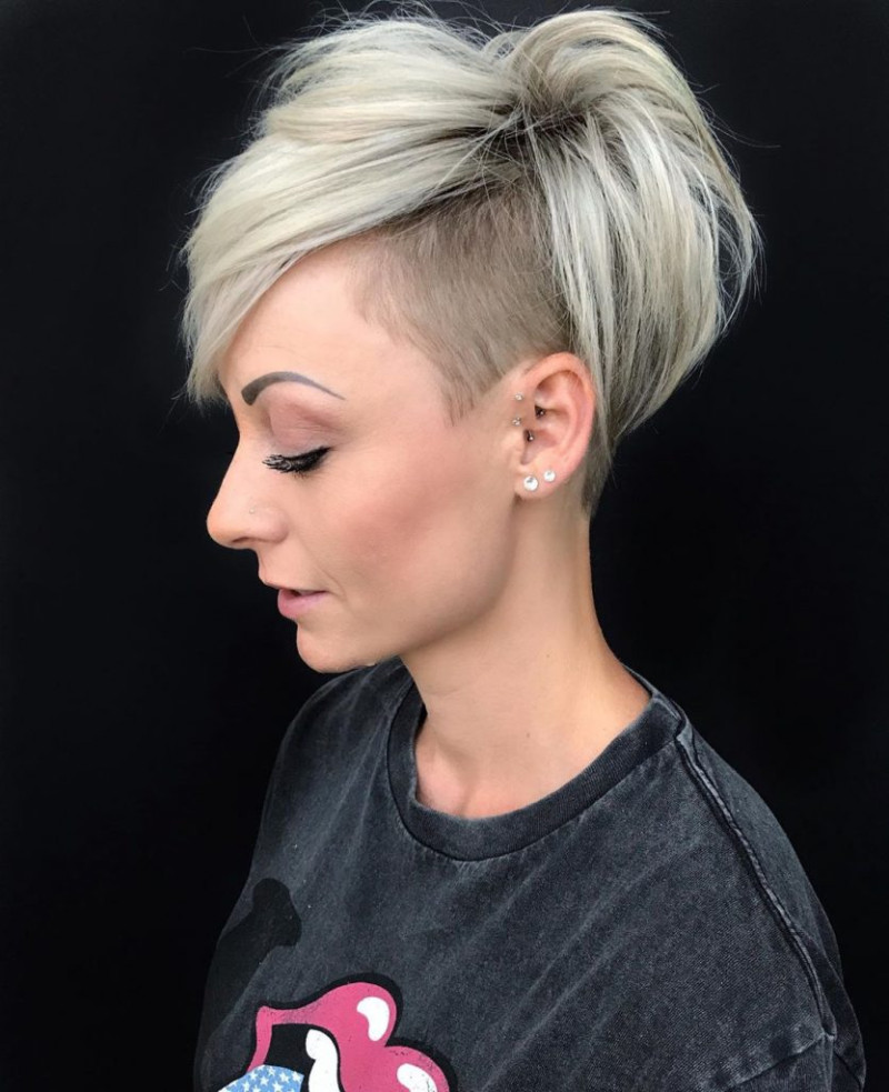 Креативность образа можно подчеркнуть смелыми вариантами короткой стрижки 2024-2025 с выбриванием. Чтобы выглядеть круто и оставаться женственной достаточно добавить в стрижку что-то новое и нестандартное. Для этого не нужно делать ирокез и сбривать пол головы, небольшого выбритого участка на затылке или височной части хватит для того чтобы модная стрижка приобрела индивидуальность и дополнительный шарм.