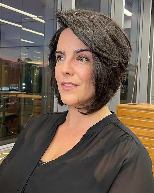 Боб с длиной до подбородка или чуть ниже может создать иллюзию удлинения лица и добавить структуры к округлым чертам. С разнообразием текстурных слоев или асимметричный, может визуально вытянуть лицо.