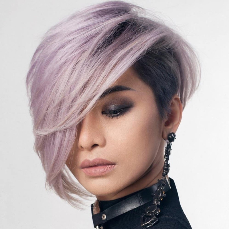 Асимметричный пикси. Создает динамику и акцентирует контуры овального лица. Подчеркивает гармоничные черты и при этом выглядит стильно и современно.