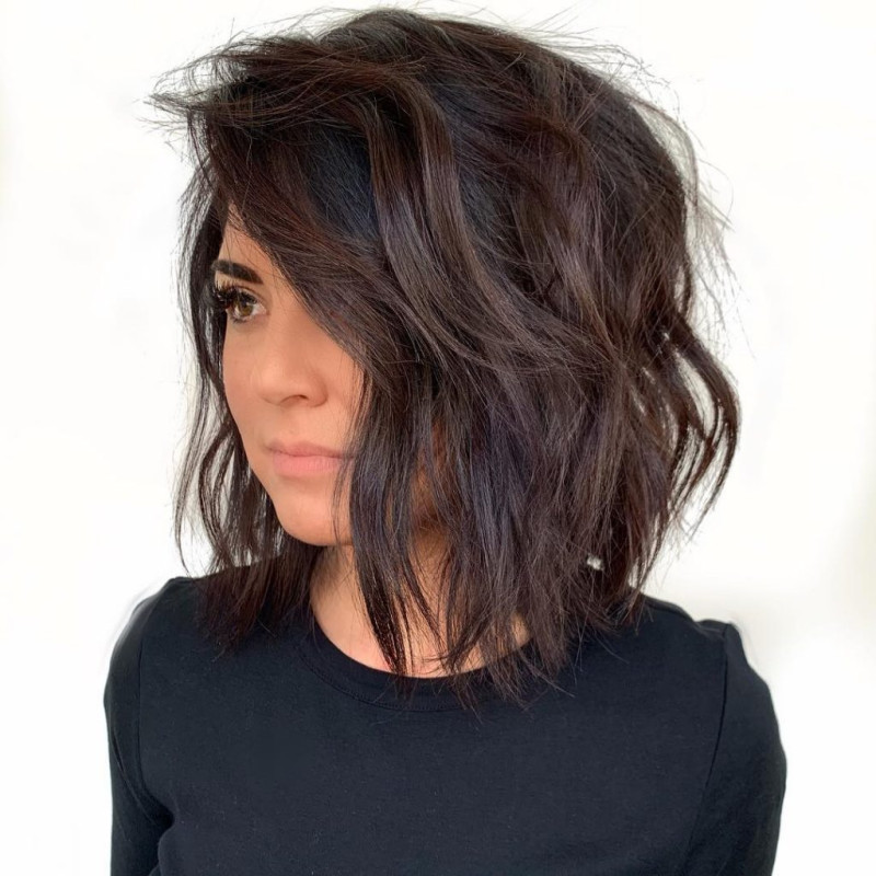 Игривые волнистые пряди и короткая рваная челка – сочетание, которое стало модным в длинных женских стрижках 2024-2025. Если раньше так называемые «пляжные» волны были актуальны больше для весенне-летнего сезона, то сегодня задорная прическа смотрится вполне удачно в осенне-зимних луках.