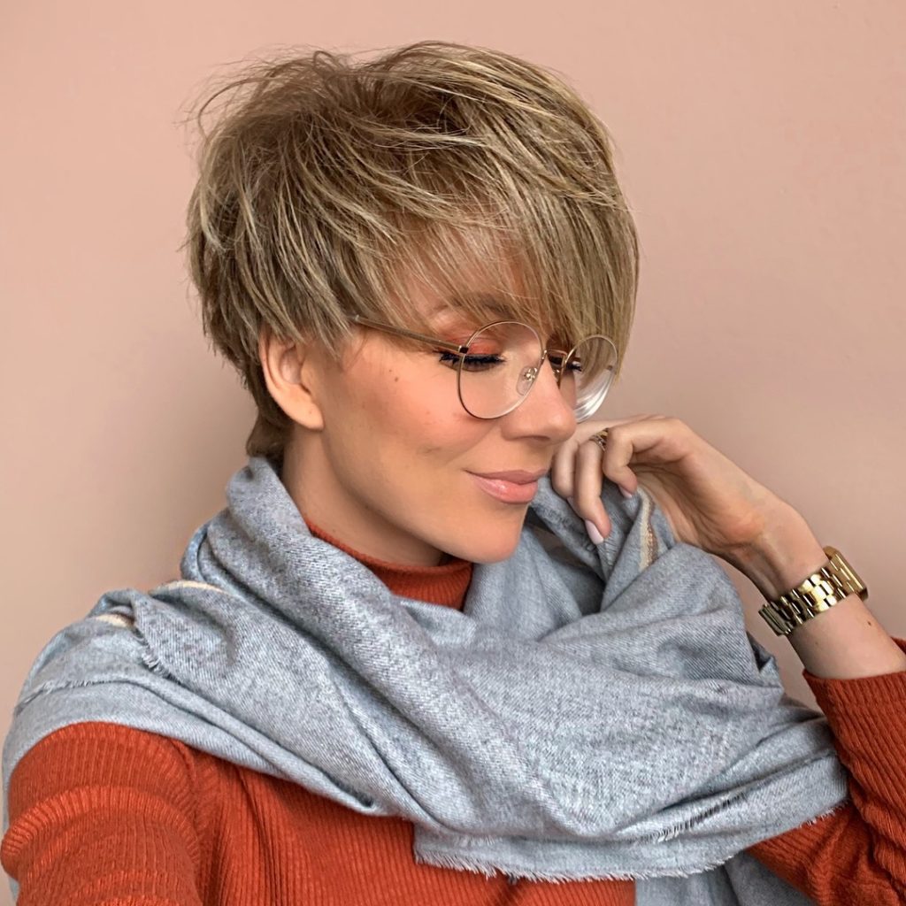 Пикси с текстурой и объемом на макушке. Объем на макушке и текстура добавляют объем и создает более мягкие линии вокруг угловатых черт лица.
