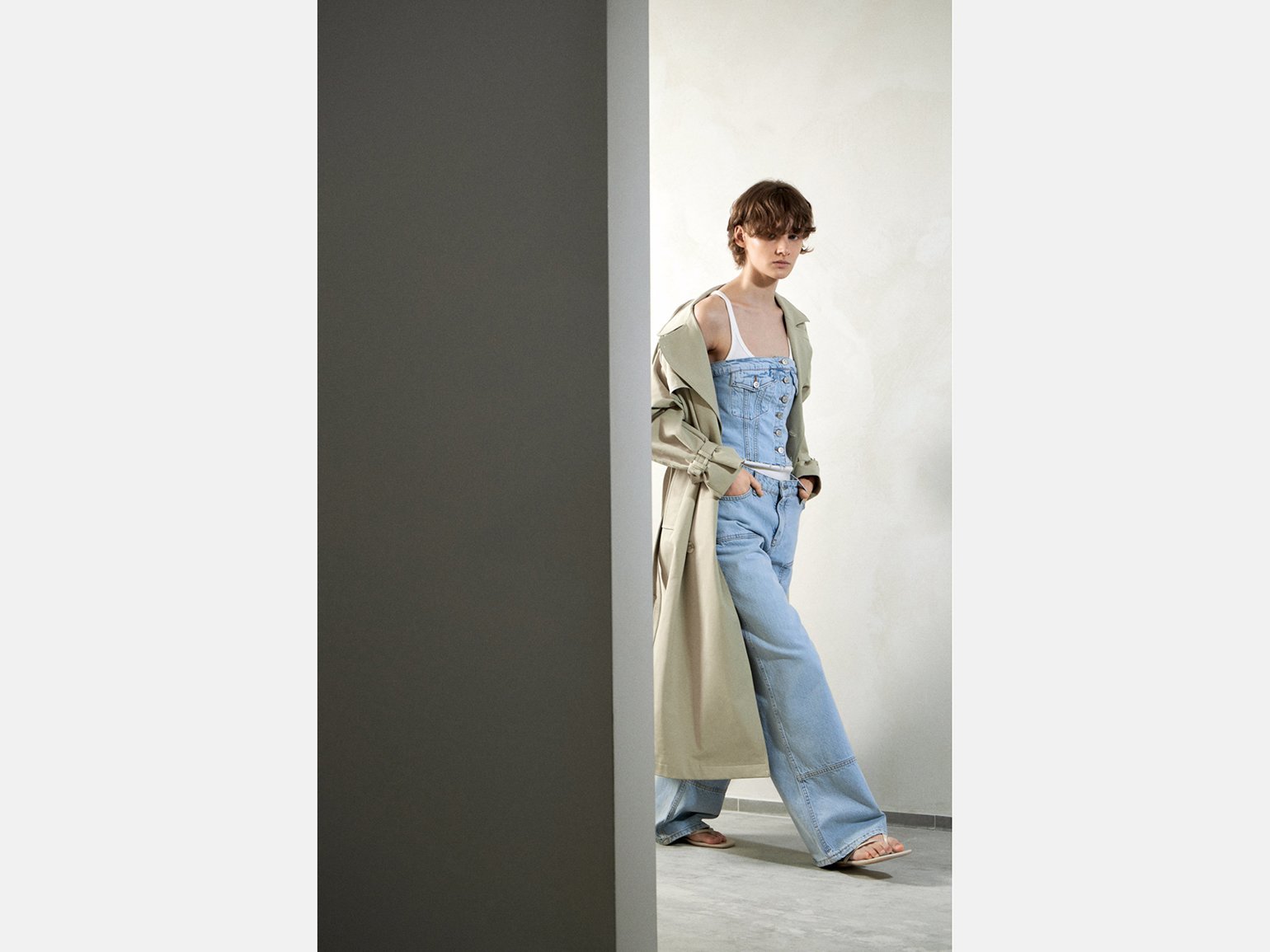 То, как мода меняет форму и крой повседневных предметов, всегда особенно интересно. Вот, например, сейчас мы наблюдаем самую резкую за последние годы смену курса с джинсов-бананов и момс на буткаты и широкие трубы — это влияние 2000-х. Такие варианты предлагаю сочетать с приталенным или даже обтягивающим верхом. И есть ощущение, что мы соскучились по таким силуэтам.