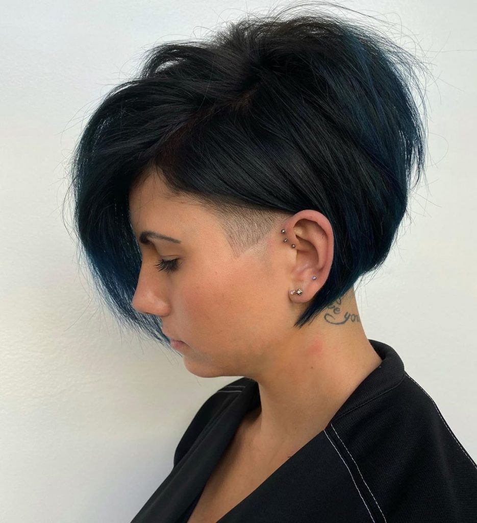 Креативность образа можно подчеркнуть смелыми вариантами короткой стрижки 2024-2025 с выбриванием. Чтобы выглядеть круто и оставаться женственной достаточно добавить в стрижку что-то новое и нестандартное. Для этого не нужно делать ирокез и сбривать пол головы, небольшого выбритого участка на затылке или височной части хватит для того чтобы модная стрижка приобрела индивидуальность и дополнительный шарм.
