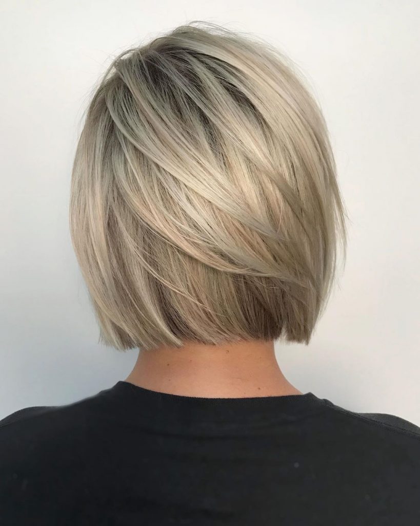 Короткий градуированный боб. Градуировка подчеркивает симметрию овала и придает ему дополнительный объем.