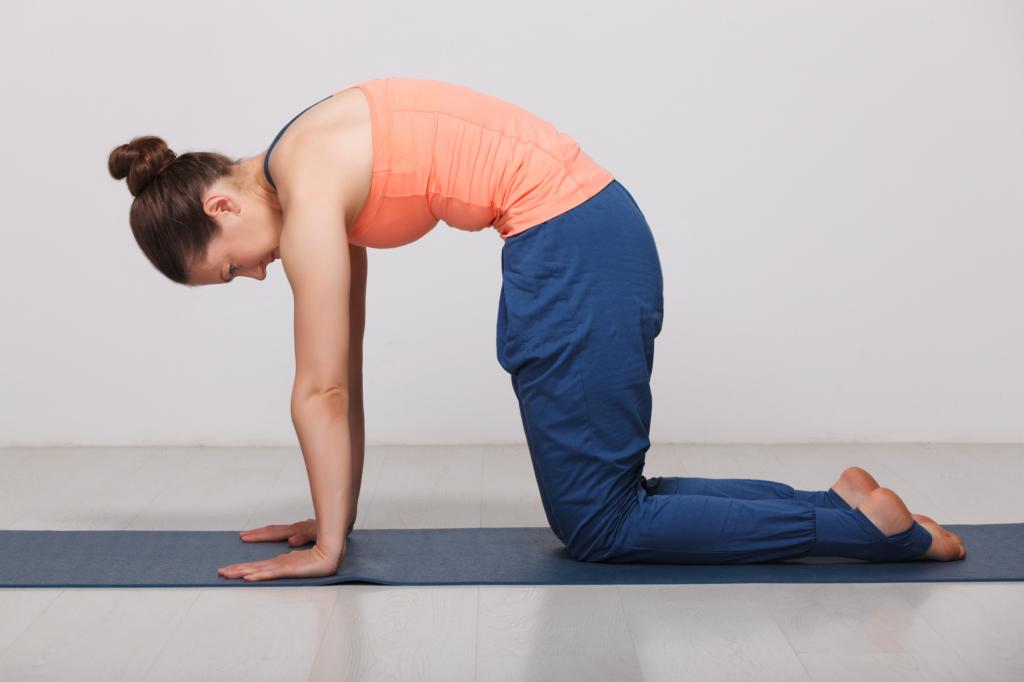 Подойдут несложные движения на фитболе, техники миофасциального релиза, упражнение «кошка».
