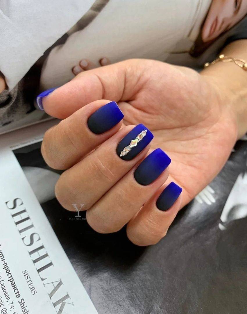 Квадратная форма как нельзя лучше подходит для плавных переходов, хотя для нее можно выбрать и более насыщенные цвета лака. Например, стильно и строго будет смотреться черное омбре. Обязательно сочетайте такой маникюр с дополнительными декоративными элементами, чтобы он стал более изящным и модным.