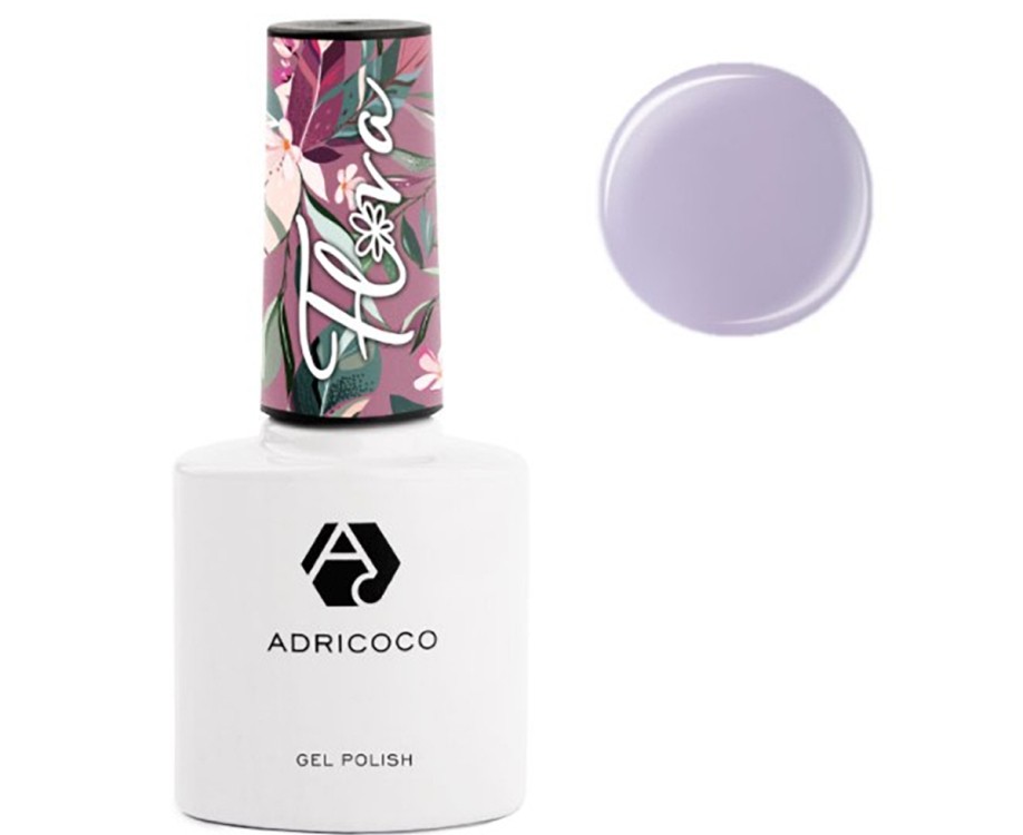 Adricoco Flora. Коллекция стойких полимерных покрытий этой марки включает 20 утончённых, аристократичных оттенков. Они относятся к категории высоко пигментированных, легко наносятся, быстро сохнут. Для холодного сезона можно выбрать белый, лиловый, фиолетовый лаки.