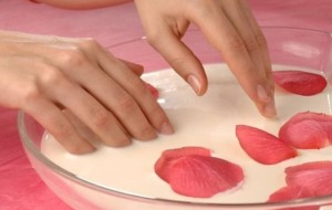 При пересушенной коже вокруг ногтей настоящим спасением станет такой состав: на 0,5 литра воды взять немного семян льна, 2 ложки сухих цветков ромашки или василька, 2-3 капли розового масла. Держать ногти в теплом растворе 20 минут. Затем смазать руки сметаной, надеть теплые перчатки на 30 минут.