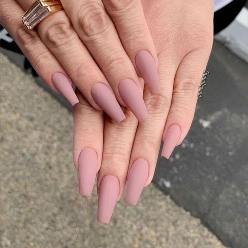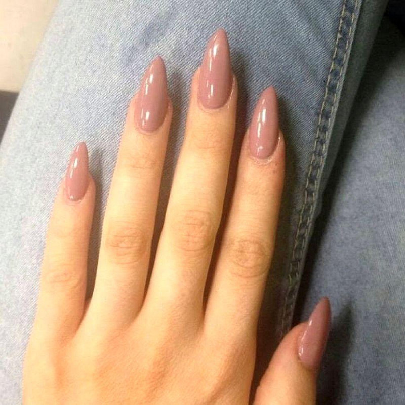 Трендовое исполнение маникюра для ногтей-балерин – полупрозрачное покрытие нежно-розового или персикового цвета.