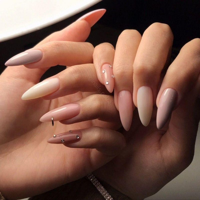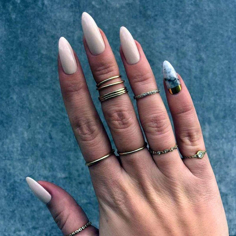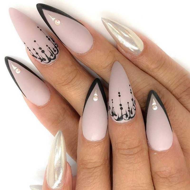 В летнем сезоне актуальность такой формы ногтей несколько снижается, и все-таки острые кончики можно выполнить для вечернего или праздничного ношения.