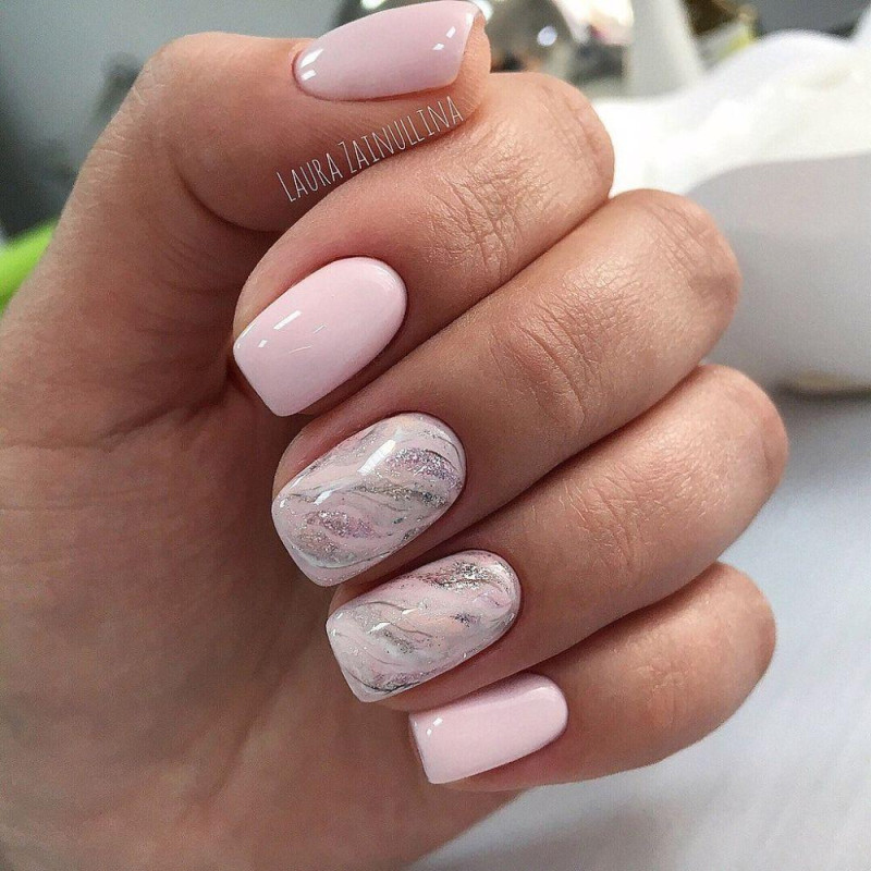 Проще всего нанести однотонное покрытие в пастельных тонах, выбрав глянцевый или матовый топ. Создавать акценты рекомендуется с помощью рисунков, принтов, фольги, прозрачных капель или стразов.