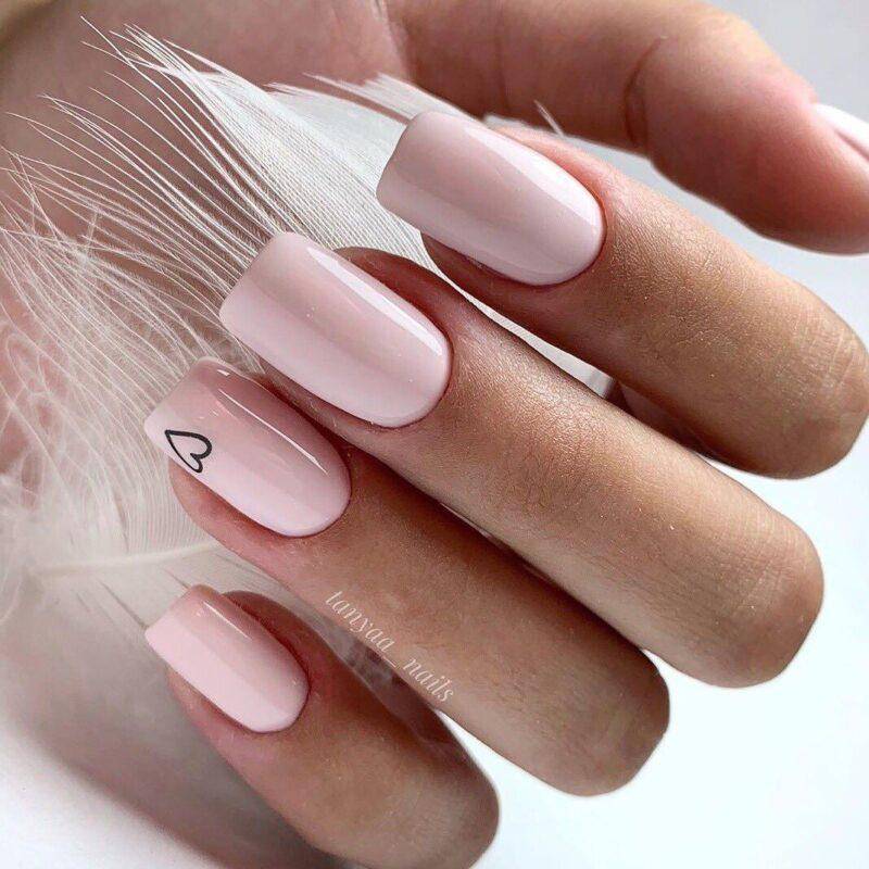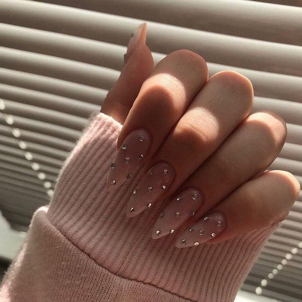 Трендовое исполнение маникюра для ногтей-балерин – полупрозрачное покрытие нежно-розового или персикового цвета.