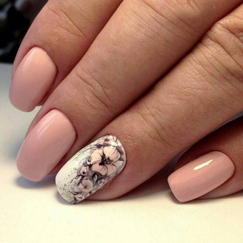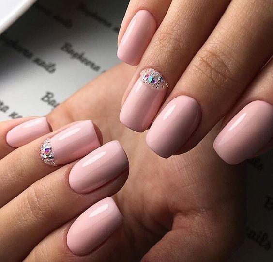 Проще всего нанести однотонное покрытие в пастельных тонах, выбрав глянцевый или матовый топ. Создавать акценты рекомендуется с помощью рисунков, принтов, фольги, прозрачных капель или стразов.